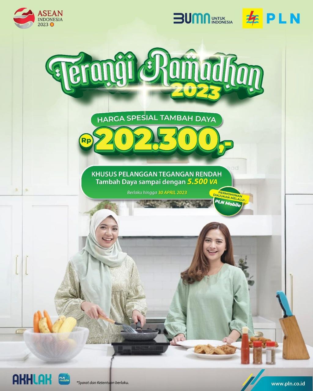 Direktur Utama PLN Darmawan Prasodjo mengatakan, PLN kembali memberikan potongan kepada pelanggan dengan harga spesial di bulan penuh berkah untuk penambahan daya listrik dengan hanya membayar Rp202.300 melalui aplikasi PLN Mobile. Promo Terangi Ramadhan 2023 ini dapat diikuti pelanggan semua golongan tarif terkecuali golongan tarif Sosial dengan peruntukan Rumah Ibadah.